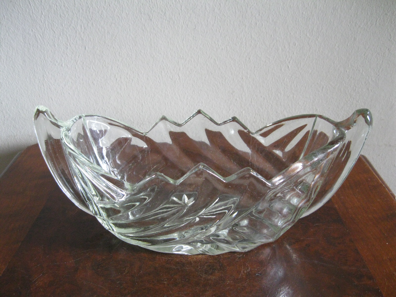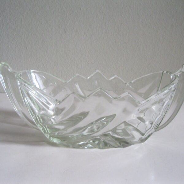Oryginalna, stara, przepiękna, szklana żardiniera huta szkła J. Stolle – Niemen lata 30 te. Wykonana z przeźroczystego, grubego szkła w białym kolorze, zdobiona od zewnątrz bogatym, reliefowym, geometrycznym tłoczeniem. Zachowana w stanie bardzo dobrym, cała bez uszkodzeń. Polecam !