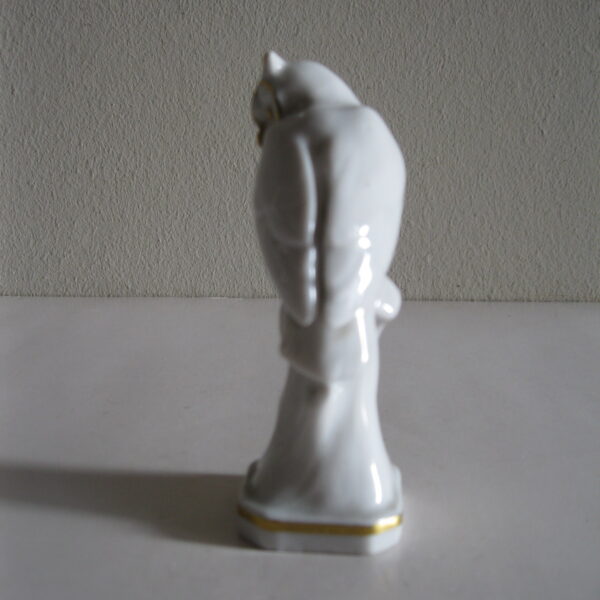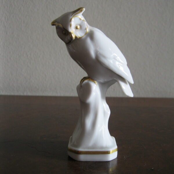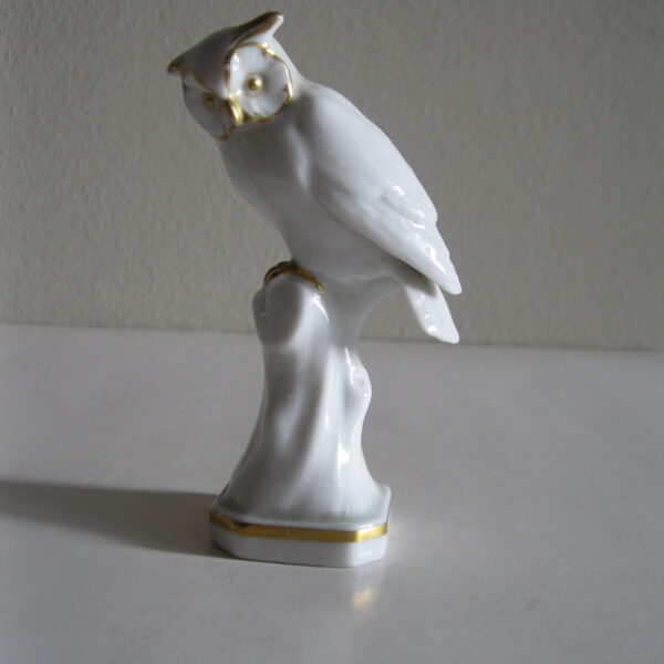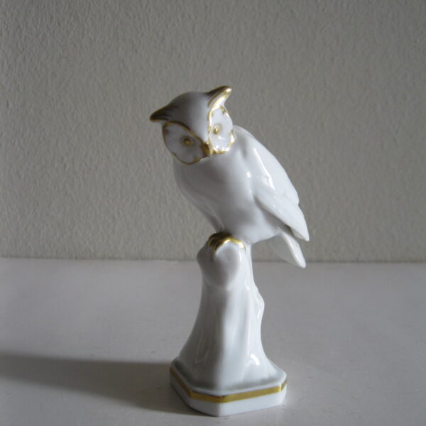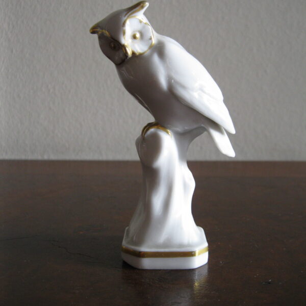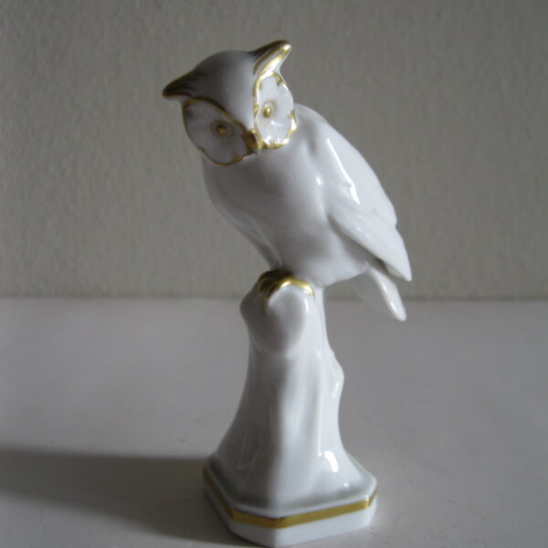 Oryginalna, stara, bardzo piękna, porcelanowa, figurka Sowa Metzler & Ortloff. Wykonana z bardzo dobrej jakości porcelany w białym kolorze, zdobiona złoceniem. Bardzo dobrze szkliwiona. Piękny design i forma ! Zachowana w stanie bardzo dobrym, cała bez uszkodzeń. Sygnowana. i numerowana. Polecam !