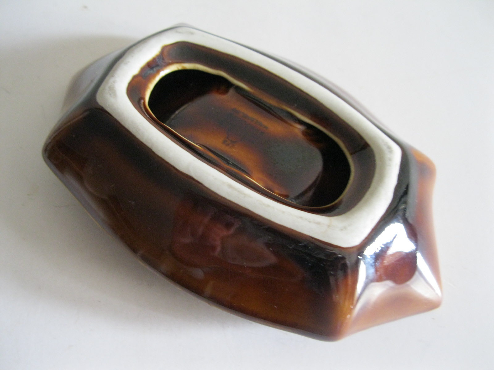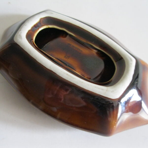Oryginalna, ceramiczna, stara, designerka popielnica Pruszków lata 60 te. Wykonana z ceramiki w brązowym kolorze, bardzo dobrze szkliwiona. Zachowana w stanie bardzo dobrym, cała bez uszkodzeń. Sygnowana.. Polecam !