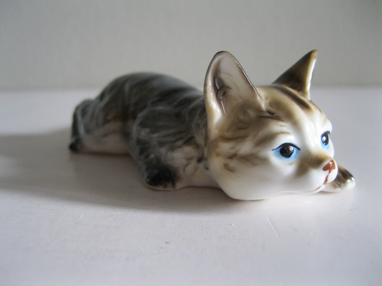 STARA FIGURKA PRĘGOWANY KOT PRZYCZAJONY