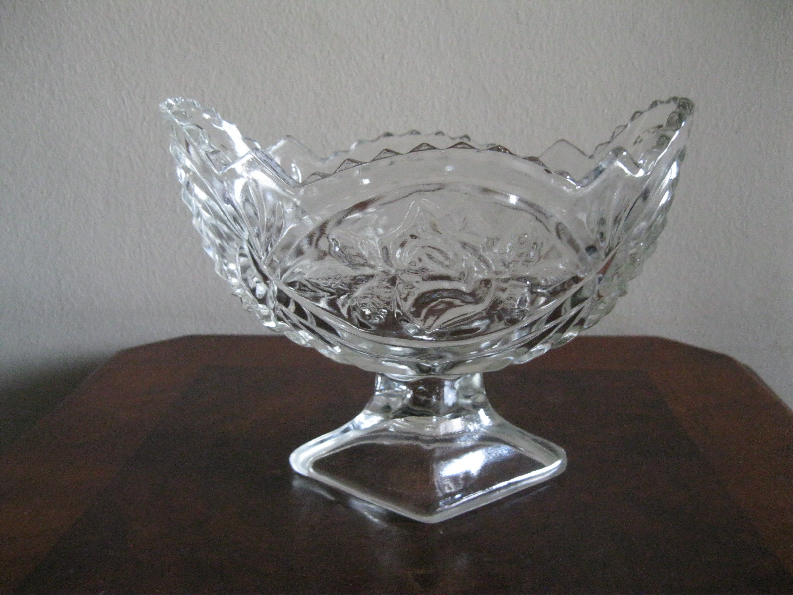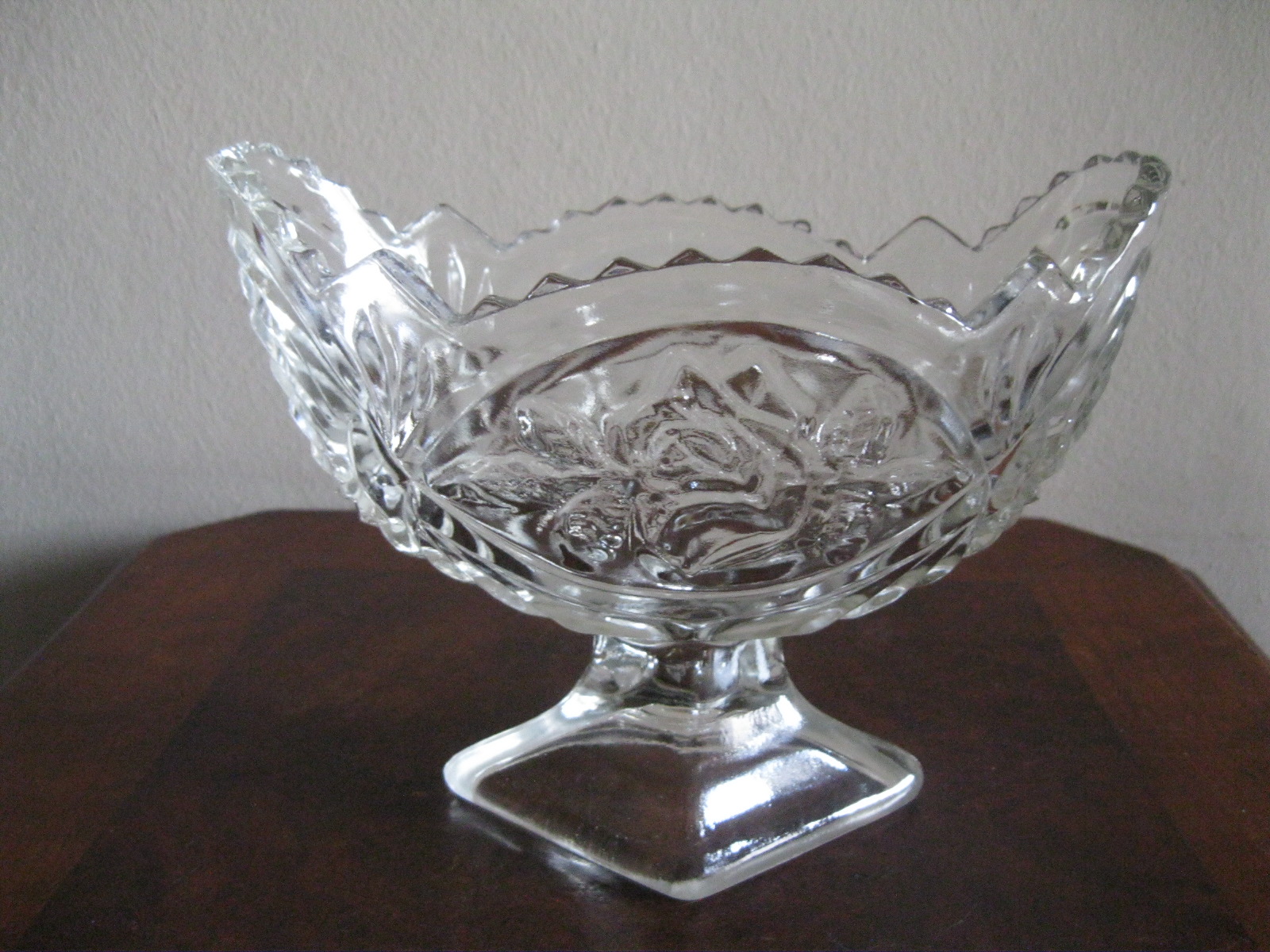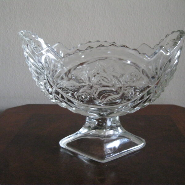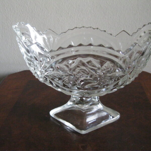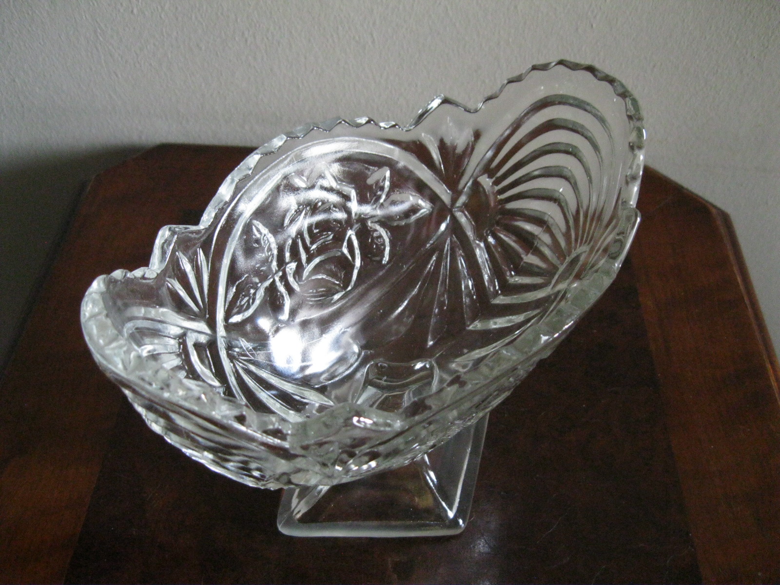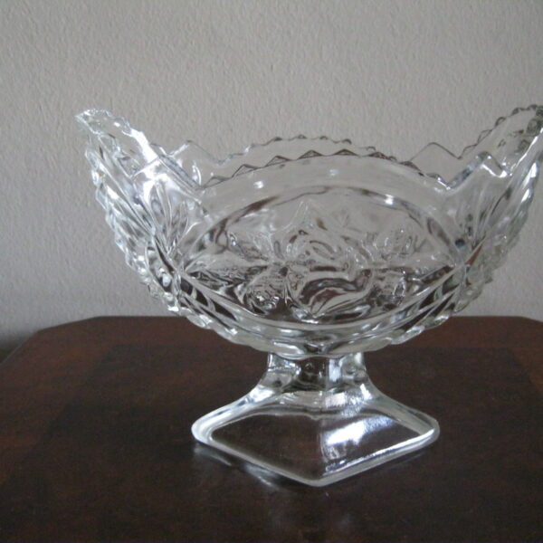 Oryginalna, stara, przepiękna, patera z różą na nodze huta Ząbkowice. Wykonana z przeźroczystego, dobrej jakości, grubego szkła w białym, przeźroczystym kolorze, zdobiona od zewnątrz bogatym, reliefowym tłoczeniem, osadzona na kształtnej nodze. Zachowana w stanie bardzo dobrym/witrynowym, cała bez uszkodzeń. Polecam !