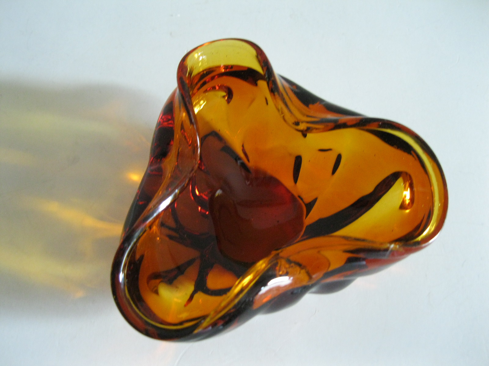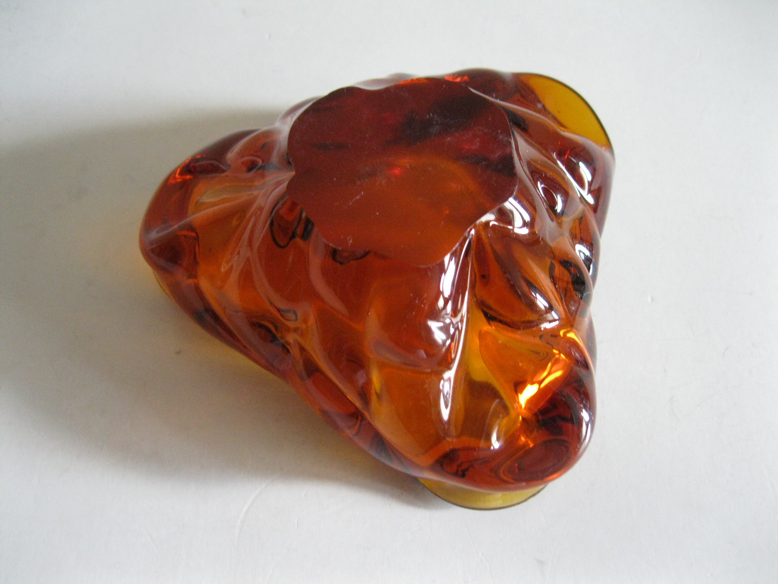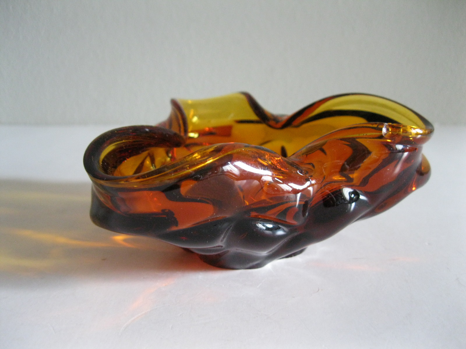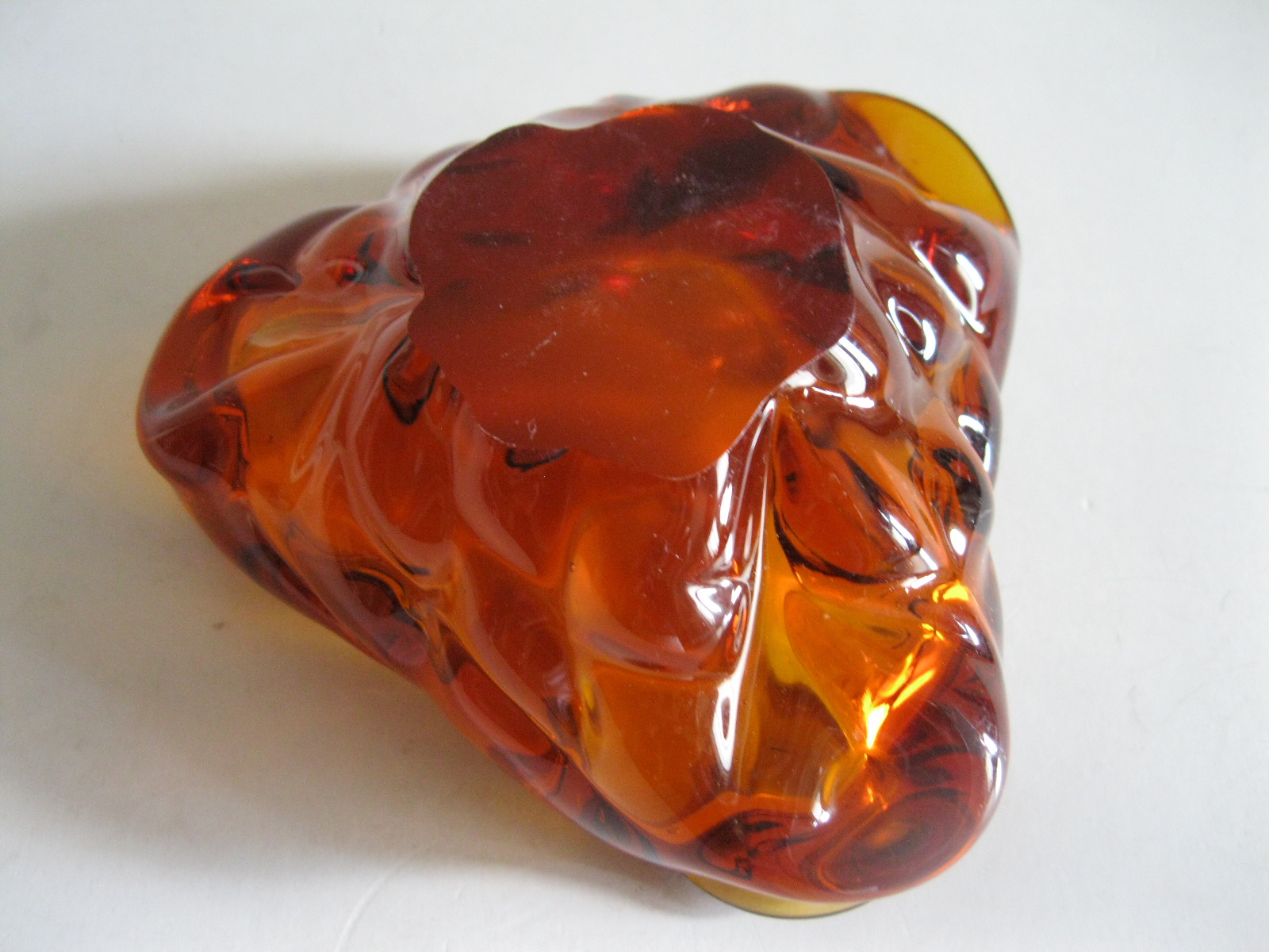 Oryginalna, stara, szklana, popielnica Wanda huta Ząbkowice. Wykonana z dobrej jakości przeźroczystego, grubego szkła w wysyconym bursztynowym kolorze. Bardzo dekoracyjna. Zachowana w stanie wizualnym bardzo dobrym, wydaje się być cała cała bez uszkodzeń, przy bardzo wnikliwym oglądaniu przedmiotu z bliska , można wyczuć, że posiada niewielkie wyszczerbienie na górnej krawędzi, bez znaczenia na urodę i jej użytkowanie. Polecam !