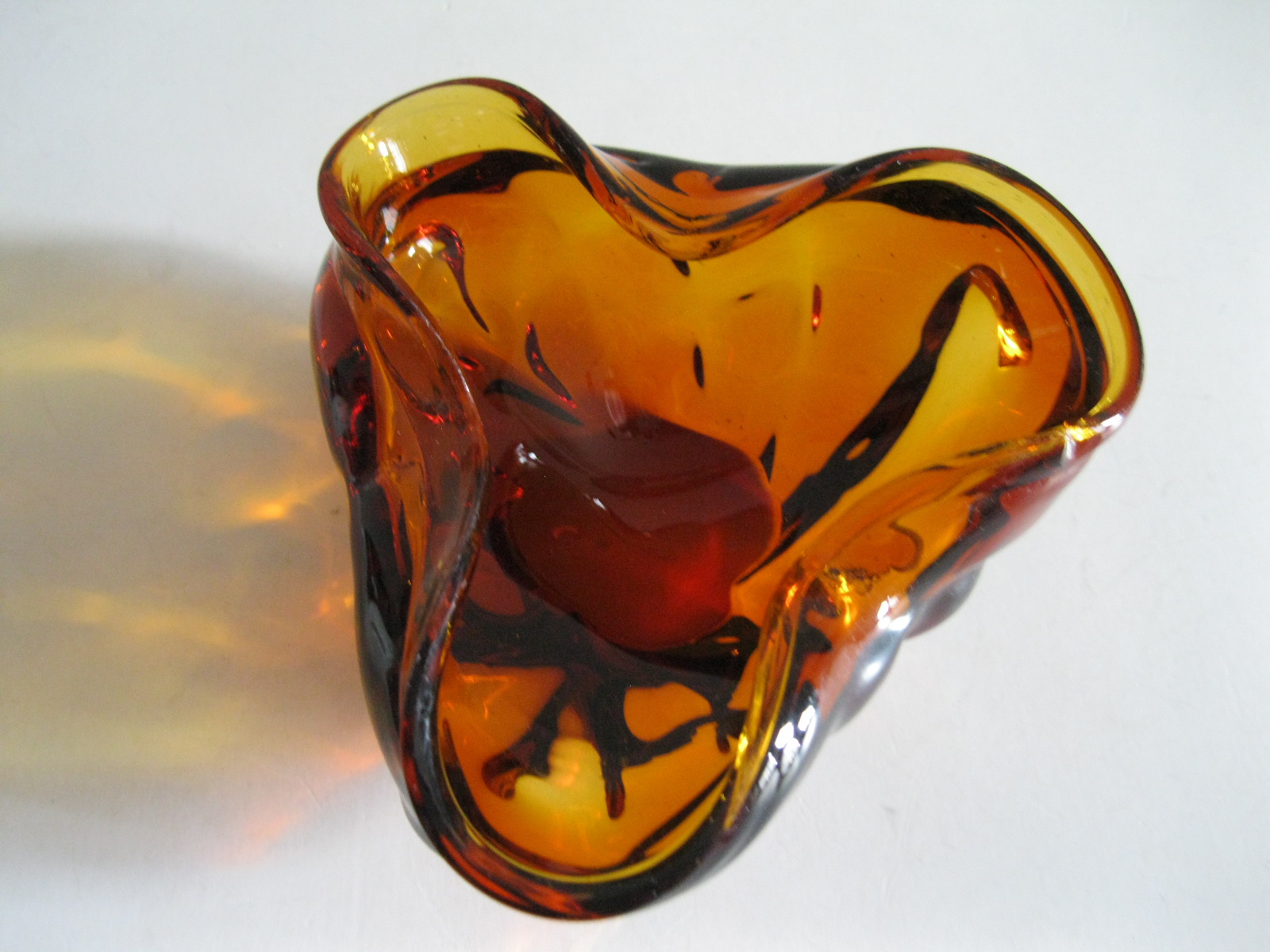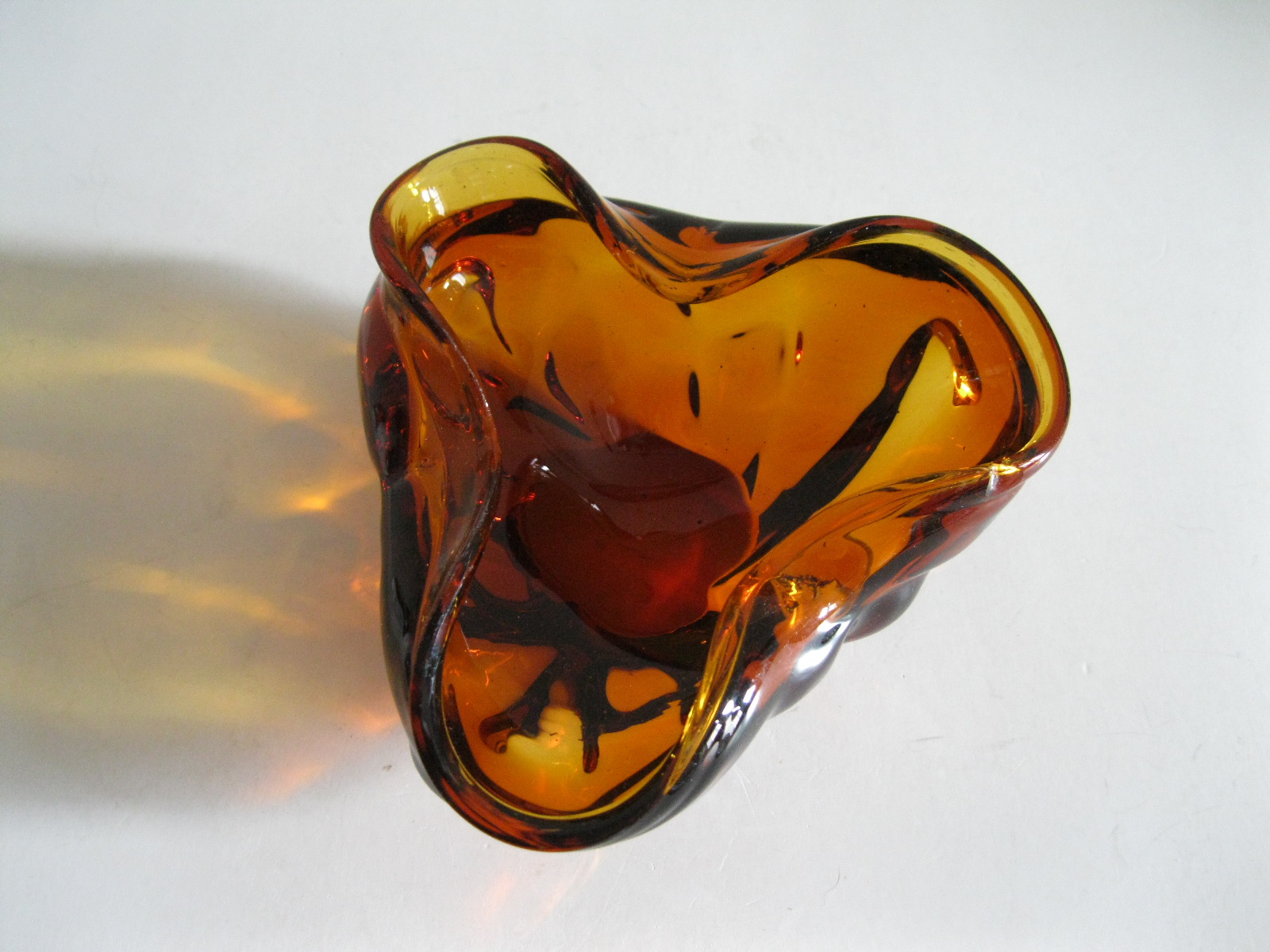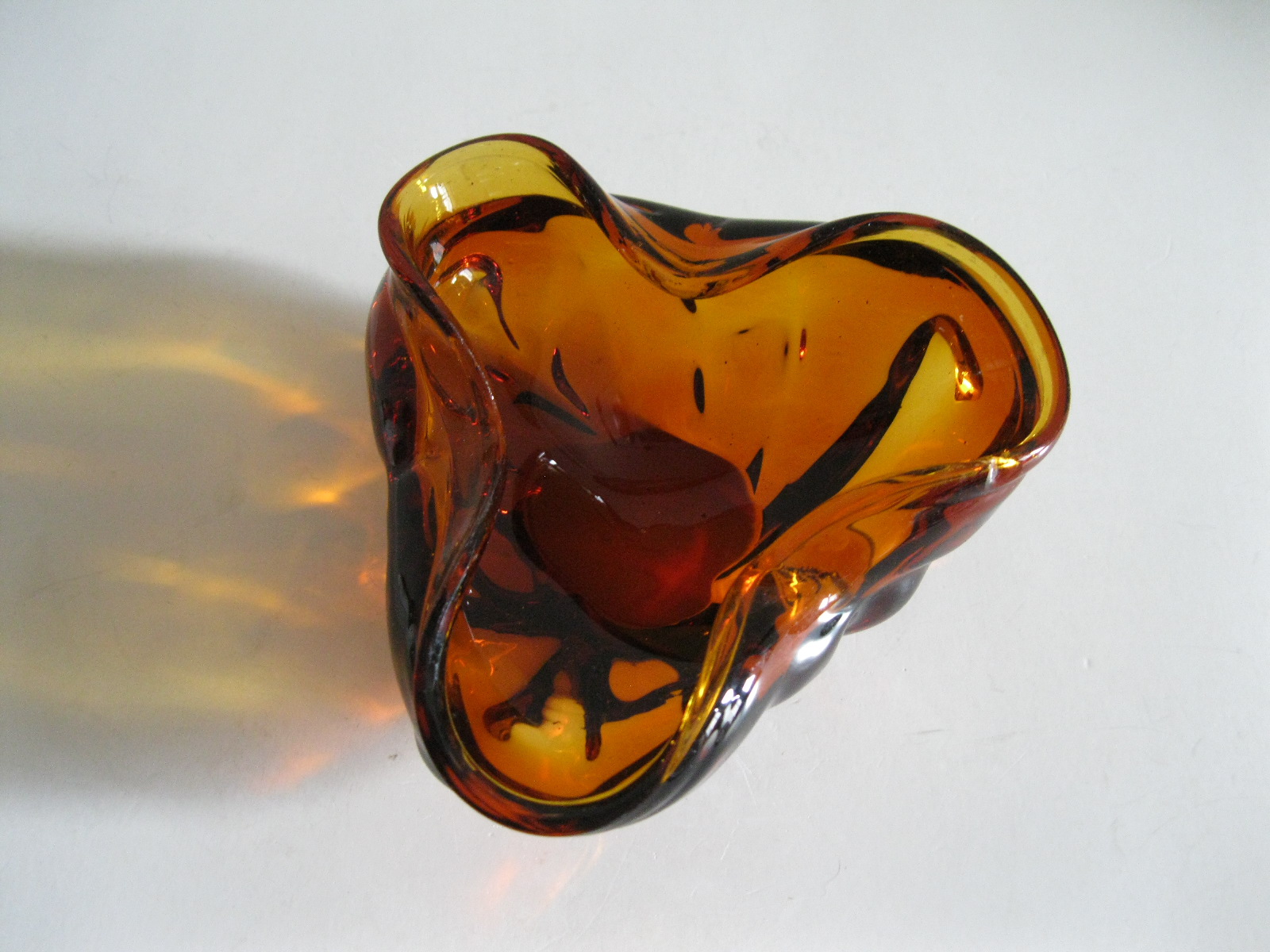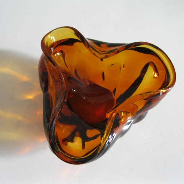 Oryginalna, stara, szklana, popielnica Wanda huta Ząbkowice. Wykonana z dobrej jakości przeźroczystego, grubego szkła w wysyconym bursztynowym kolorze. Bardzo dekoracyjna. Zachowana w stanie wizualnym bardzo dobrym, wydaje się być cała cała bez uszkodzeń, przy bardzo wnikliwym oglądaniu przedmiotu z bliska , można wyczuć, że posiada niewielkie wyszczerbienie na górnej krawędzi, bez znaczenia na urodę i jej użytkowanie. Polecam !