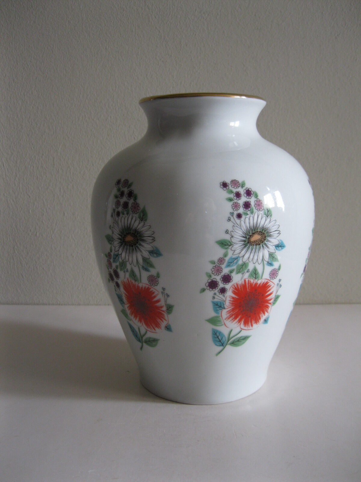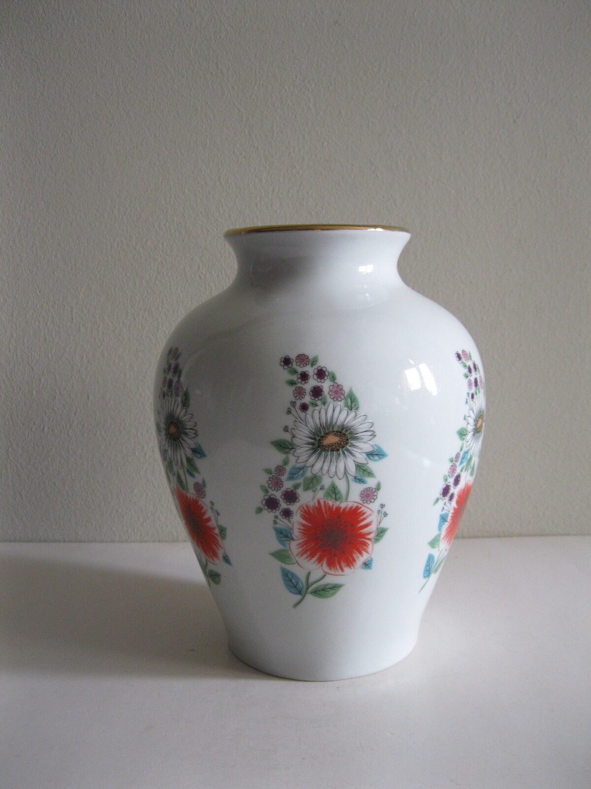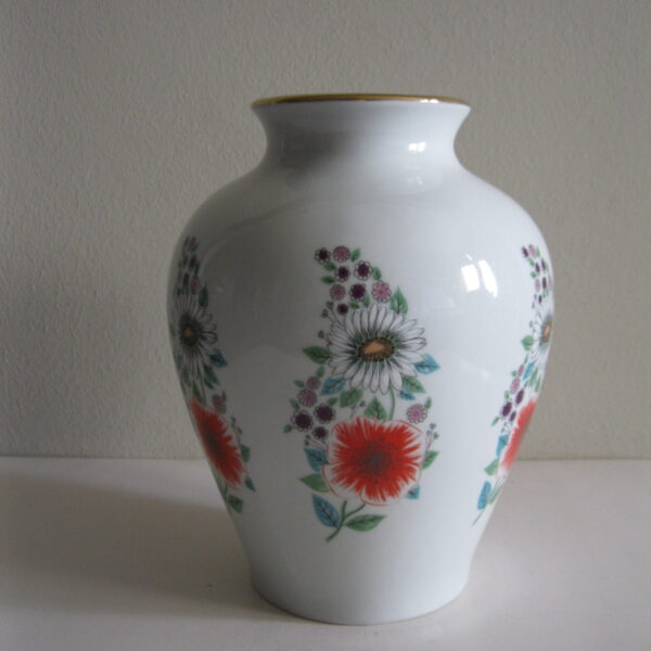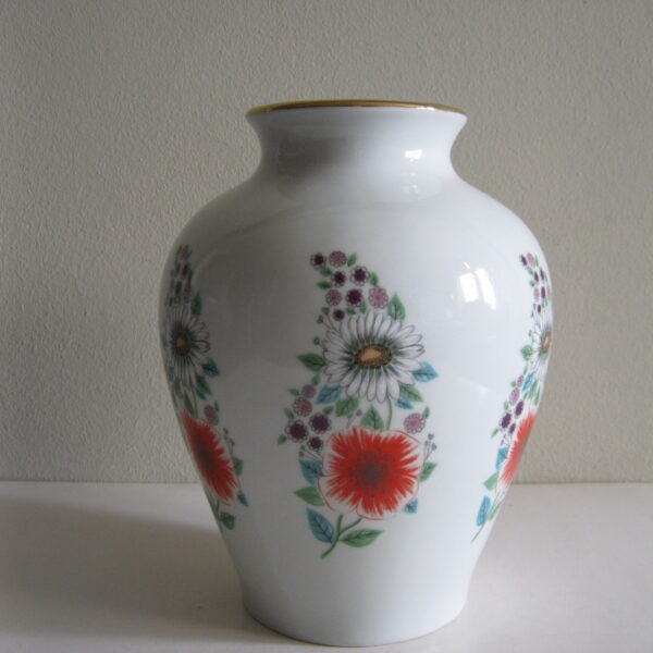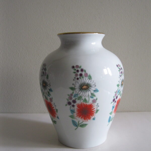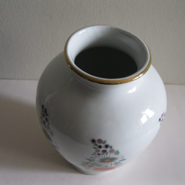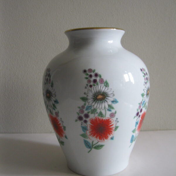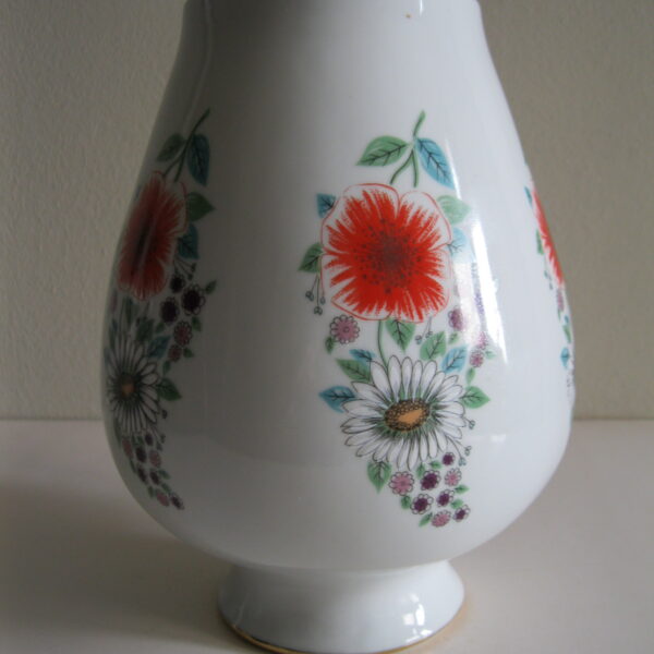 Oryginalny, bardzo dekoracyjny, stary, dość duży wazon Chodzież Kwiaty polne lata 60 – 70 te. Klasyczny kształt. Wykonany z solidnej porcelany w białym kolorze zdobiony wokół wzorem w wielokolorowe kwiaty polne Otwór wylewu dodatkowo, dodatkowo suto zdobiony złoceniem. Zachowany w stanie bardzo dobrym, cały bez uszkodzeń. Idealny do ozdoby i użytku i jako gustowna ozdoba wnętrza. Sygnowany numerowany. Polecam !